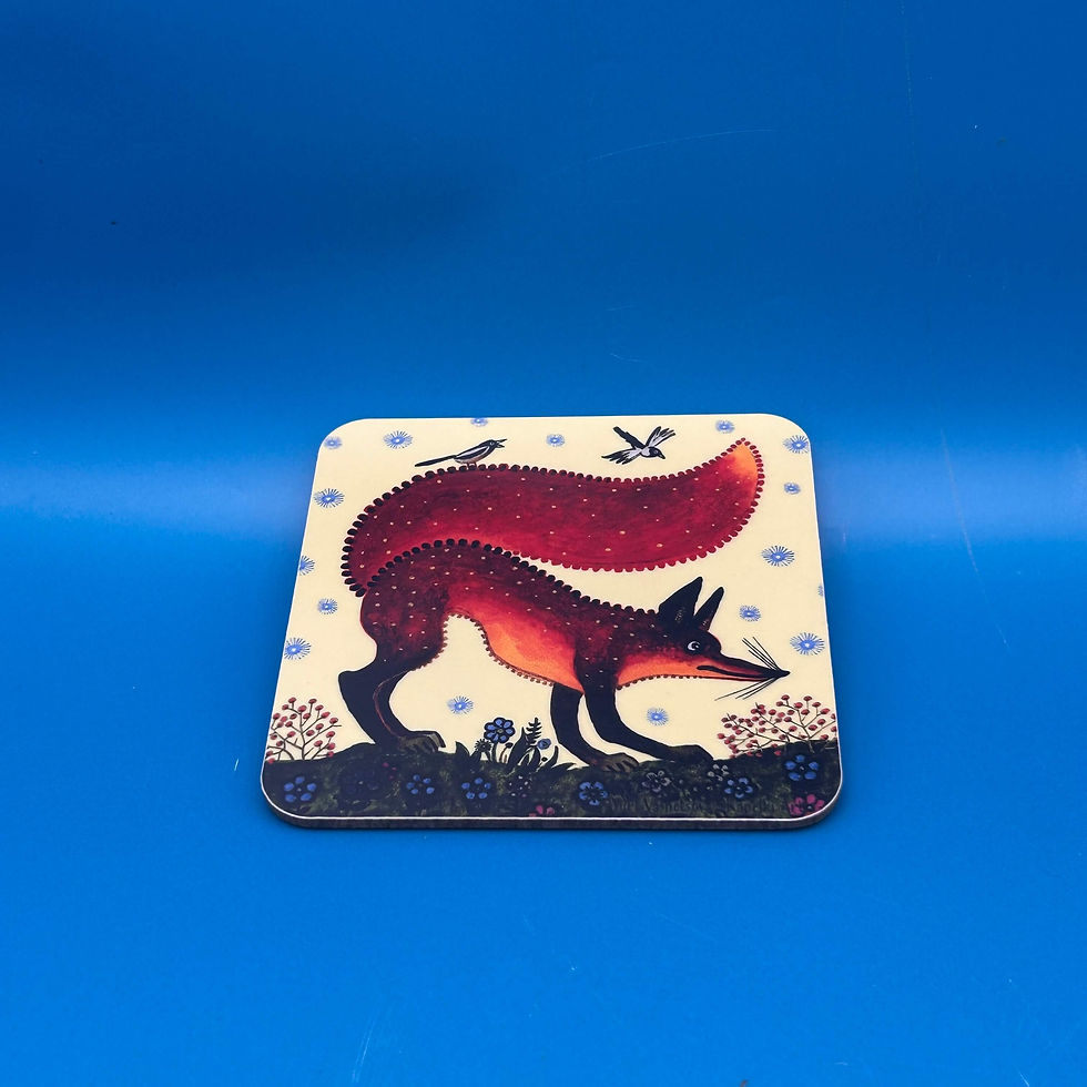Red fox folk art cork coaster